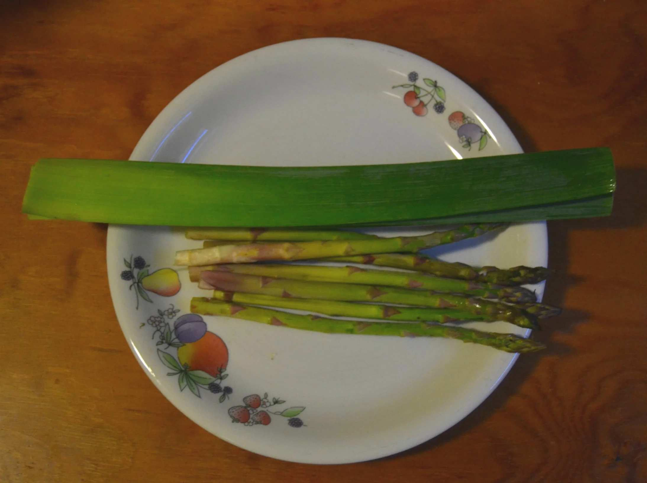 En una olla pequeña, rehogar en aceite de oliva virgen extra el puerro, los espárragos, la cebolla y los ajos picados. Añadir la merluza troceada, y rehogar un poco. Añadir los berberechos (y el líquido de la lata), las alubias (escurridas y lavadas) y agua hasta cubrir.